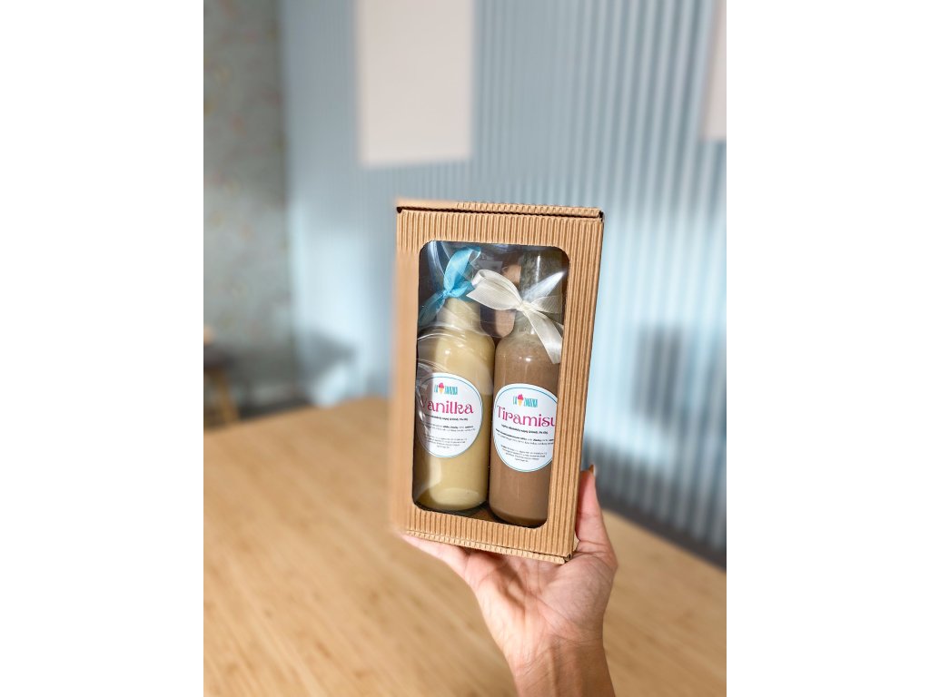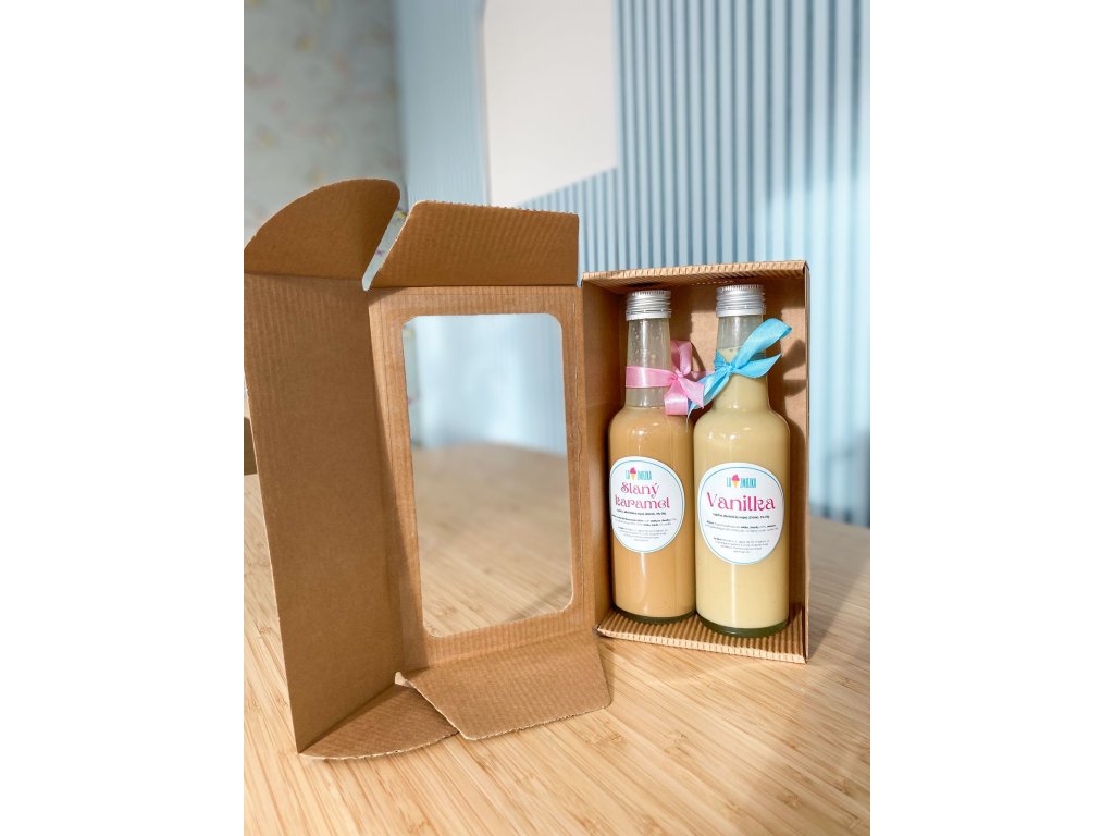 Vanilka: Slazené kondenzované mléko, žloutky (15 %), smetana, rum Captain Morgan 35 % (15 %), cukr, vanilkový extrakt, vanilka (1 %).