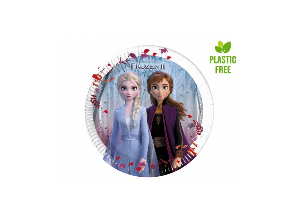 Ekologické papírové talířky s motivem Frozen 2 potěší všechny malé fanoušky Elsy a Anny. Jsou ideální pro dětskou narozeninovou oslavu a neobsahují žádné plasty.
