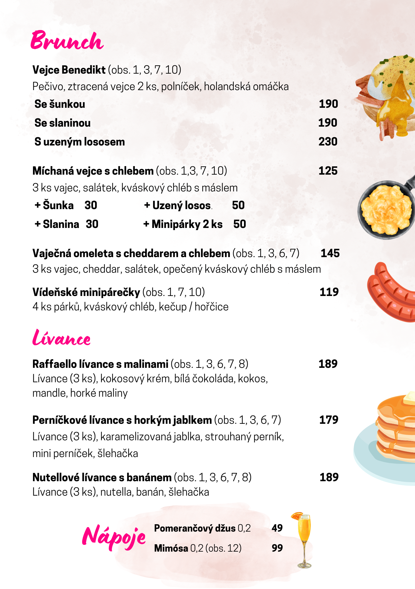 Snídaně vám na Barrandově nabízíme každý den, na Stodůlkách o víkendech a státních svátcích, vždy od 9:00 do 14:00.