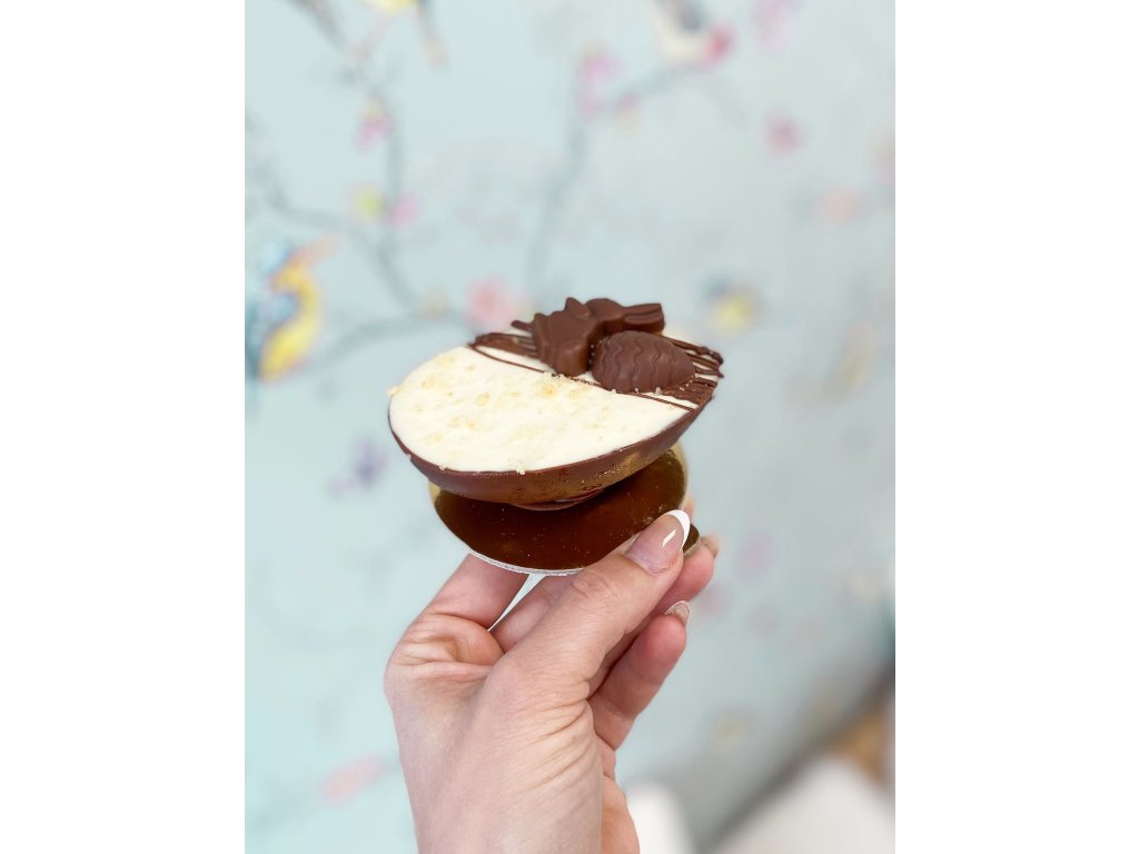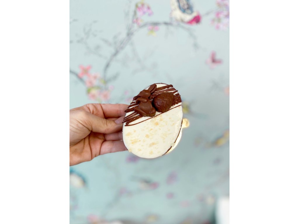 Čokoládové vejce s tvarohovou náplní a bílou čokoládou.
