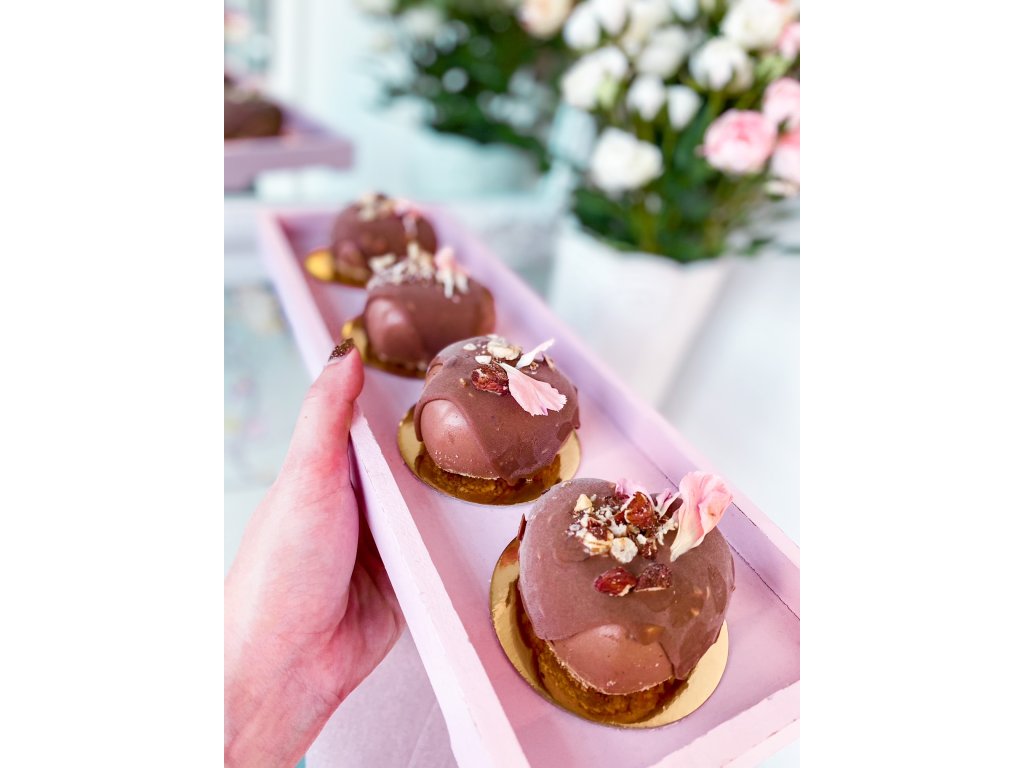 Složení: Geisha zmrzlina (mléko, geisha, cukr, smetana, sušené mléko, kakao, glukóza, dextróza, karob), máslové sušenky, mléčná čokoláda, rýžový olej, lískové ořechy, jedlé květy.