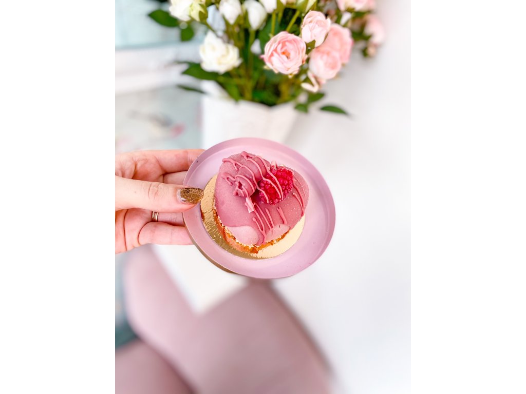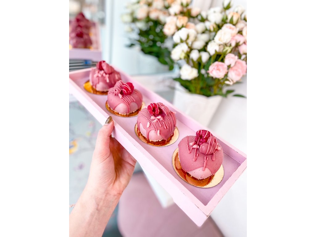 Složení: Malinové mascarpone zmrzlina (mléko, mascarpone (10%), cukr, maliny (17%), smetana, sušené mléko, glukóza, dextróza, karob), máslové sušenky, ruby čokoláda, rýžový olej, jedlé květy.